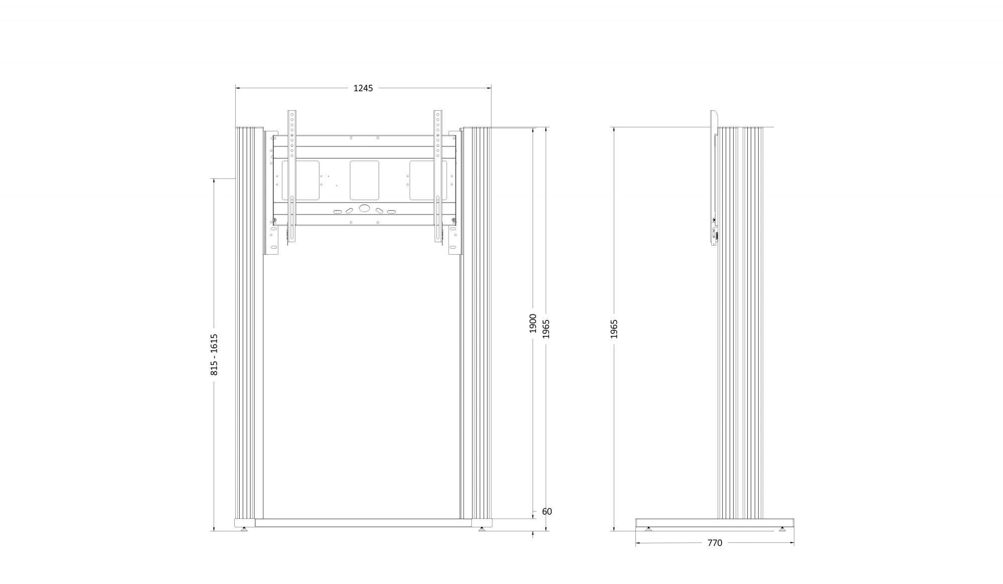 Per manueller Höhenverstellung lässt sich die komplette Monitor Wandhalterung an den zwei Aluminiumpylonen in der Höhe verstellen. Dadurch ist gewährleistet, dass jeder Nutzer in der für ihn ergonomisch besten Höhe arbeiten und präsentieren kann.