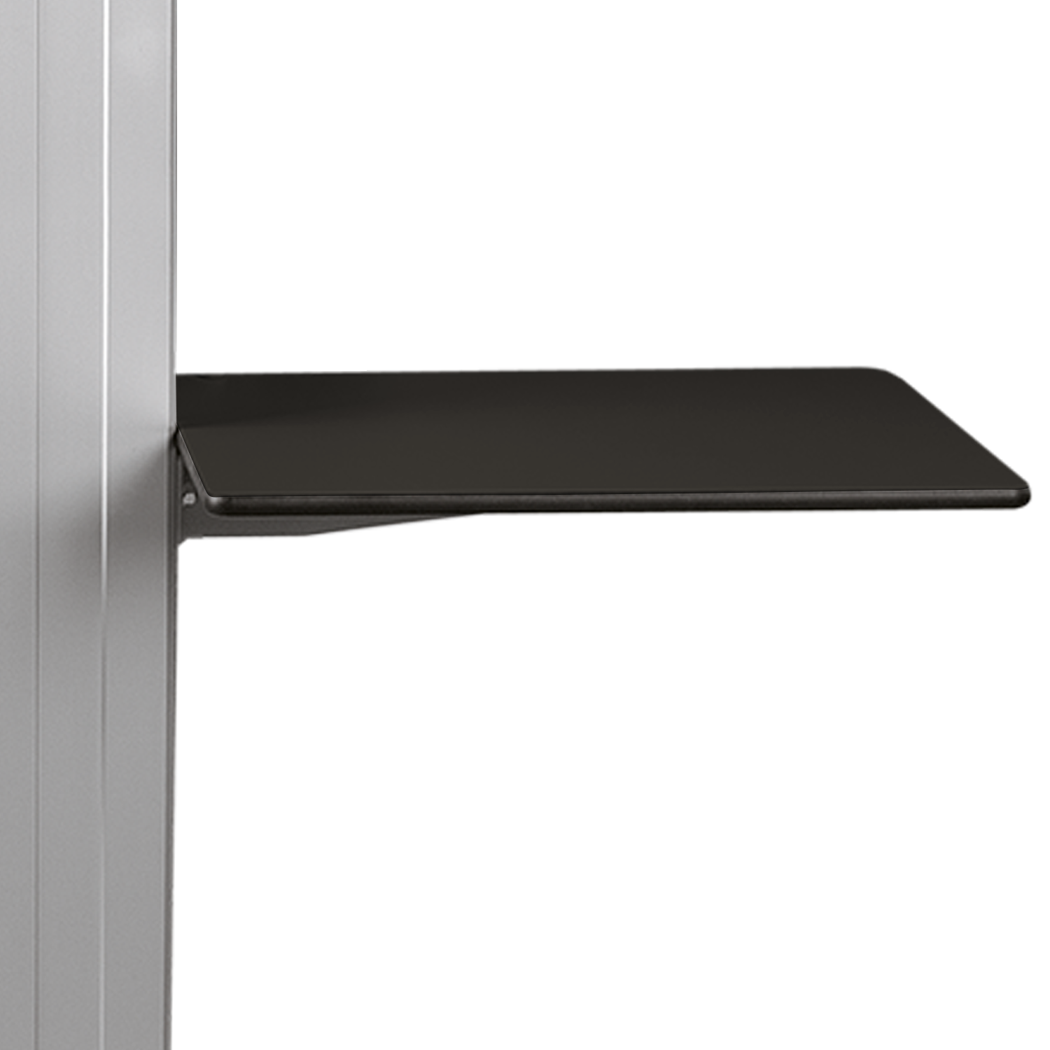 Seitentisch zur Nutzung als seitliche Ablage für Laptops oder andere Gegenstände. Der Seitentisch wird komplett mit Montageschrauben geliefert und kann sowohl rechts als auch links an die Pylone montiert werden.