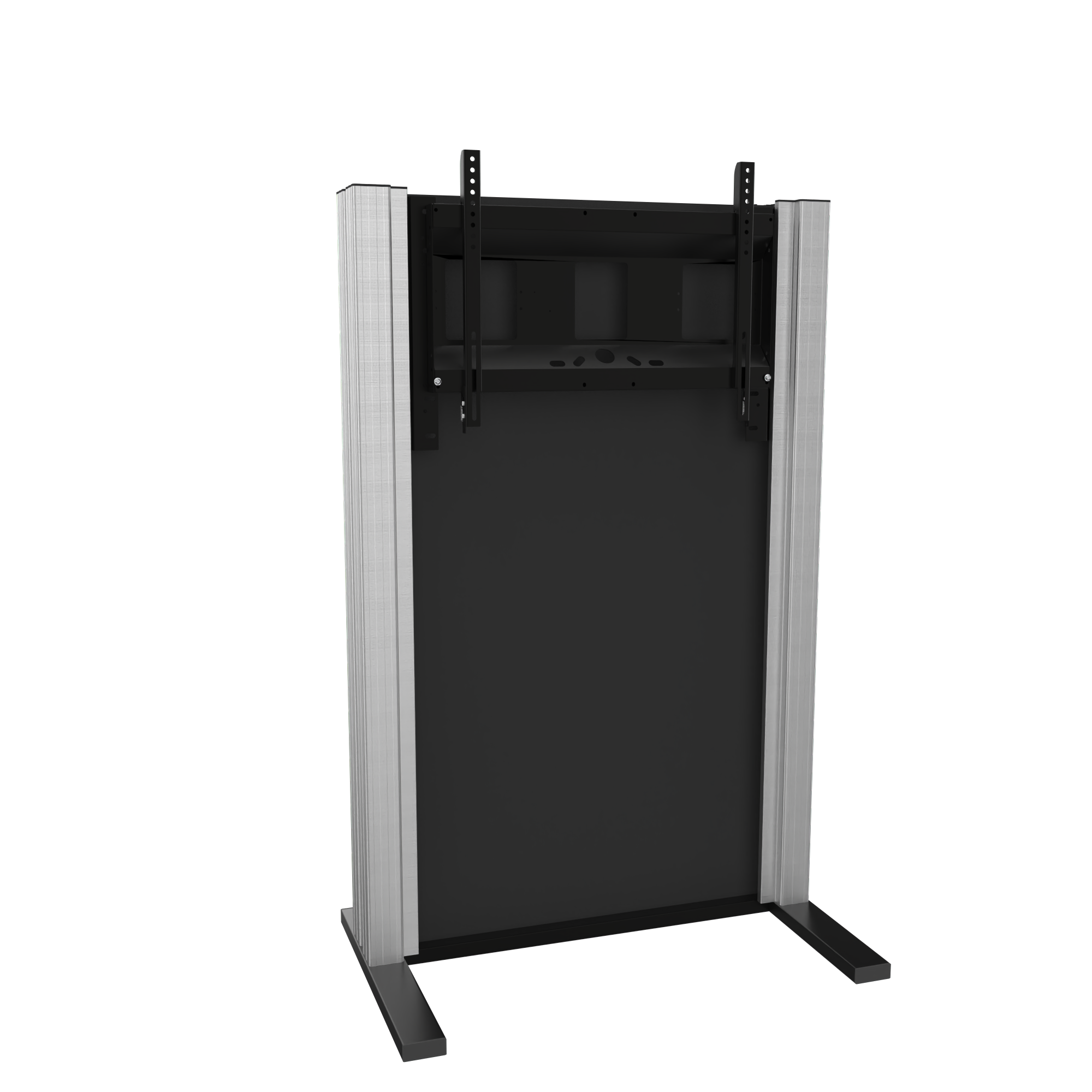 This free-standing, manually height-adjustable counterweight system for monitors is compatible with all touchscreen displays available on the market, from 65" to 86" screens.